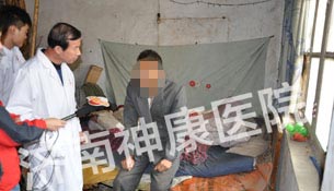 当天下午,济南神康医院精神疾病专家马增来主任在神康救助小组的陪同下来到了张先生家里,面对穿着白色隔离服的医生,张先生新生畏惧,对马主任的诊疗很是配合,经过把脉及一系列的问诊,马主任得出结论“不出所料,张先生确实为典型的精神分裂症,其症状表现主要是多疑、凭空闻声、被害妄想、思维意识紊乱并伴有打人毁物等行为”。马主任表示“患者病史长达10年,且伴有打人毁物等行为,必须跟随我们回医院接受封闭式的综合治疗”。